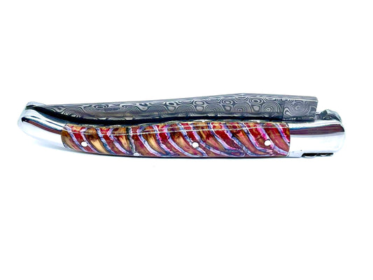 Couteau pliant damas artisanal - Laguiole Molaire de Mammouth stabilisée lame de Damas pliable 12 cm TigerMai-Raindrop