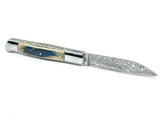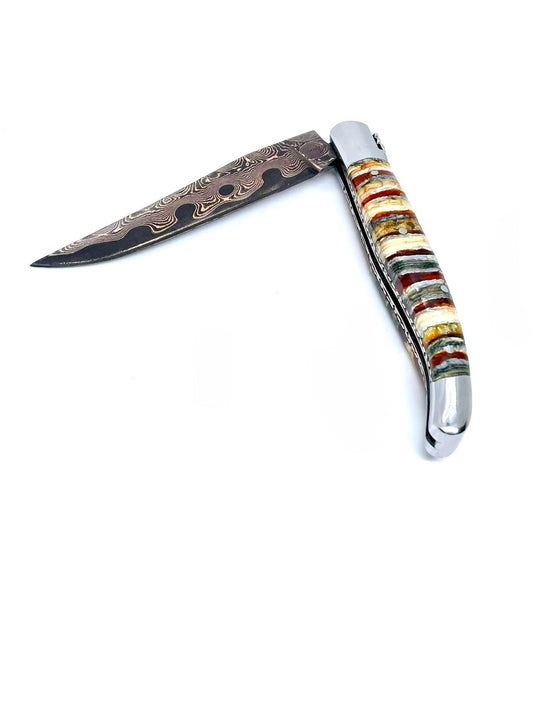 Couteau pliant damas artisanal en Molaire de Mammouth modèle Laguiole