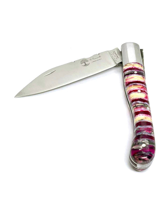 Coutellerie Passarelli - Couteau Aurillac lame pliable 10.5 cm Corne de buffle et inserts de nacre