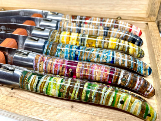 Coutellerie Passarelli - Coffret de 6 couteaux Laguiole 12 cm Molaire de mammouth teintée et stabilisée
