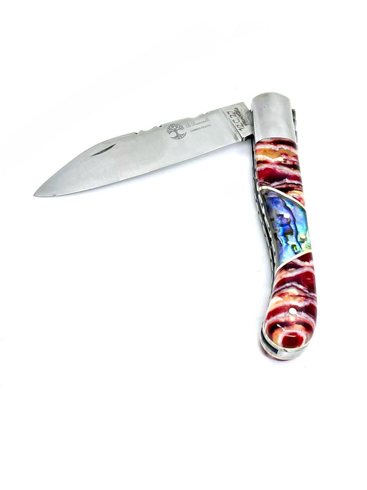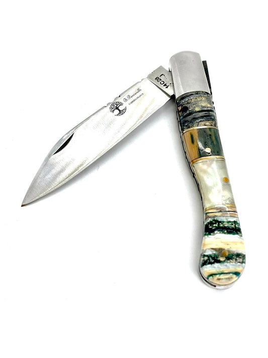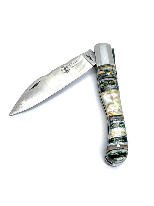 Coutellerie Passarelli - Couteau Laguiole lame pliable 12cm molaire de mammouth teintée et stabilisée abalone