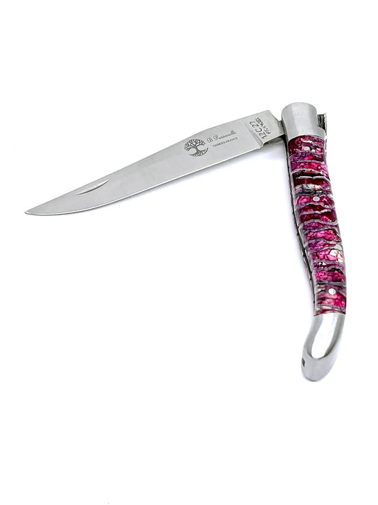Coutellerie Passarelli - Couteau Laguiole lame pliable 12cm molaire de mammouth rouge
