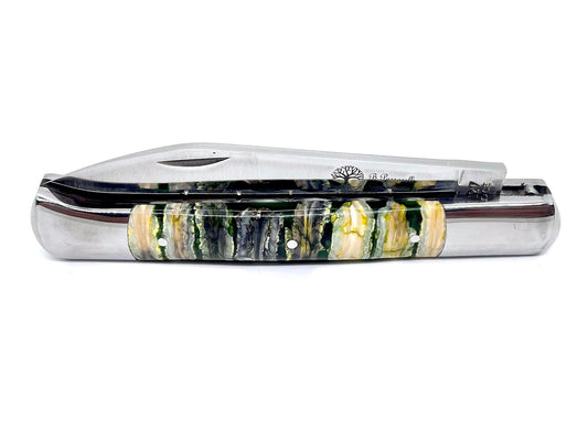 Coutellerie Passarelli - Couteau Aurillac lame pliable 10.5 cm molaire de mammouth teintée et stabilisée abalone