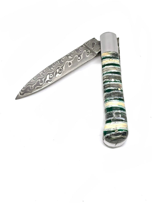 Coutellerie Passarelli - Couteau Roquefort lame pliable 11,5 cmmolaire de mammouth verte