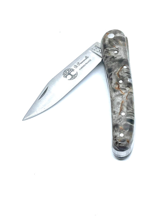 Coutellerie Passarelli - Couteau Alsacien lame pliable 10 cm Bouleau madré teinté et stabilisé anthracite