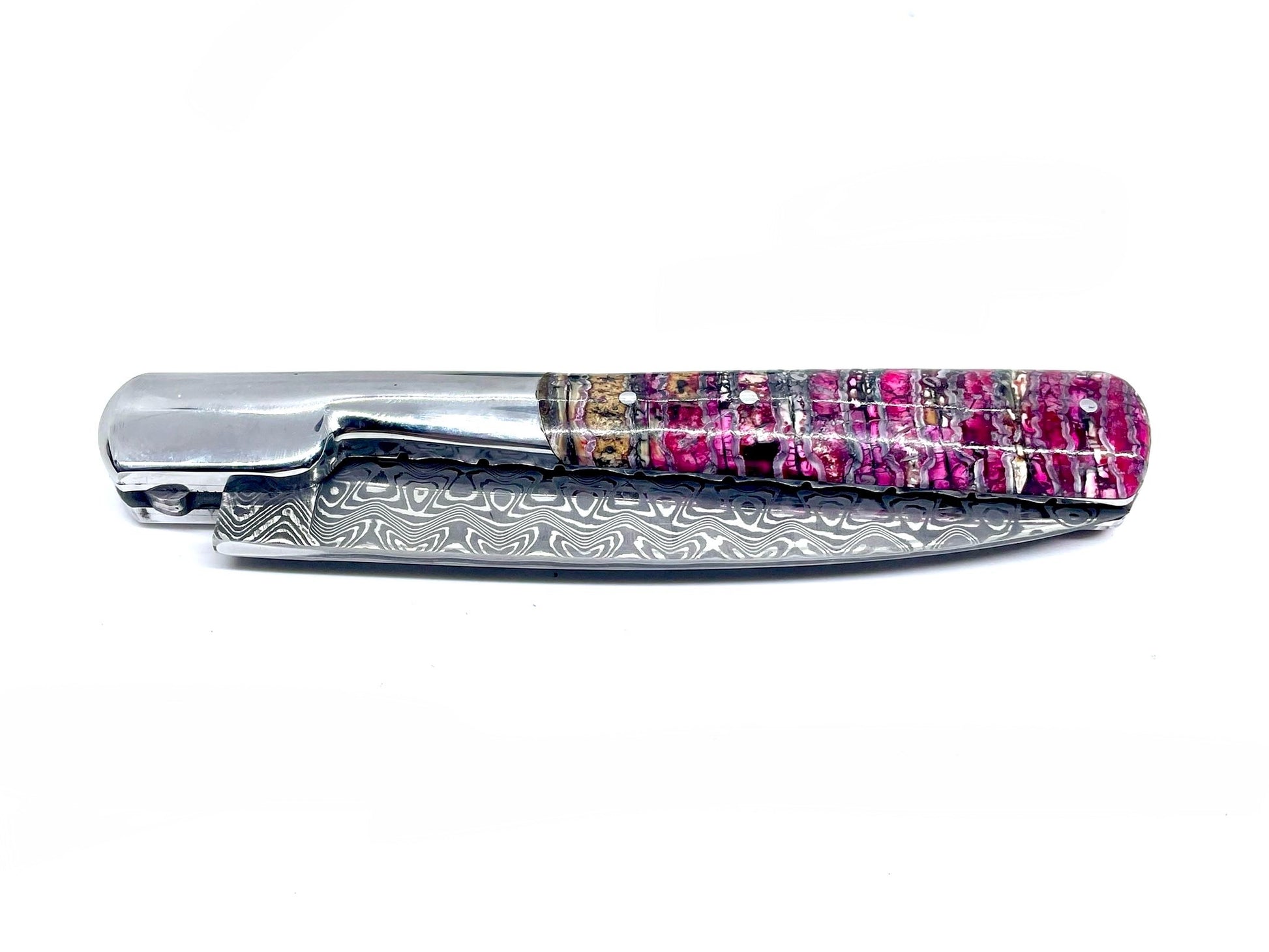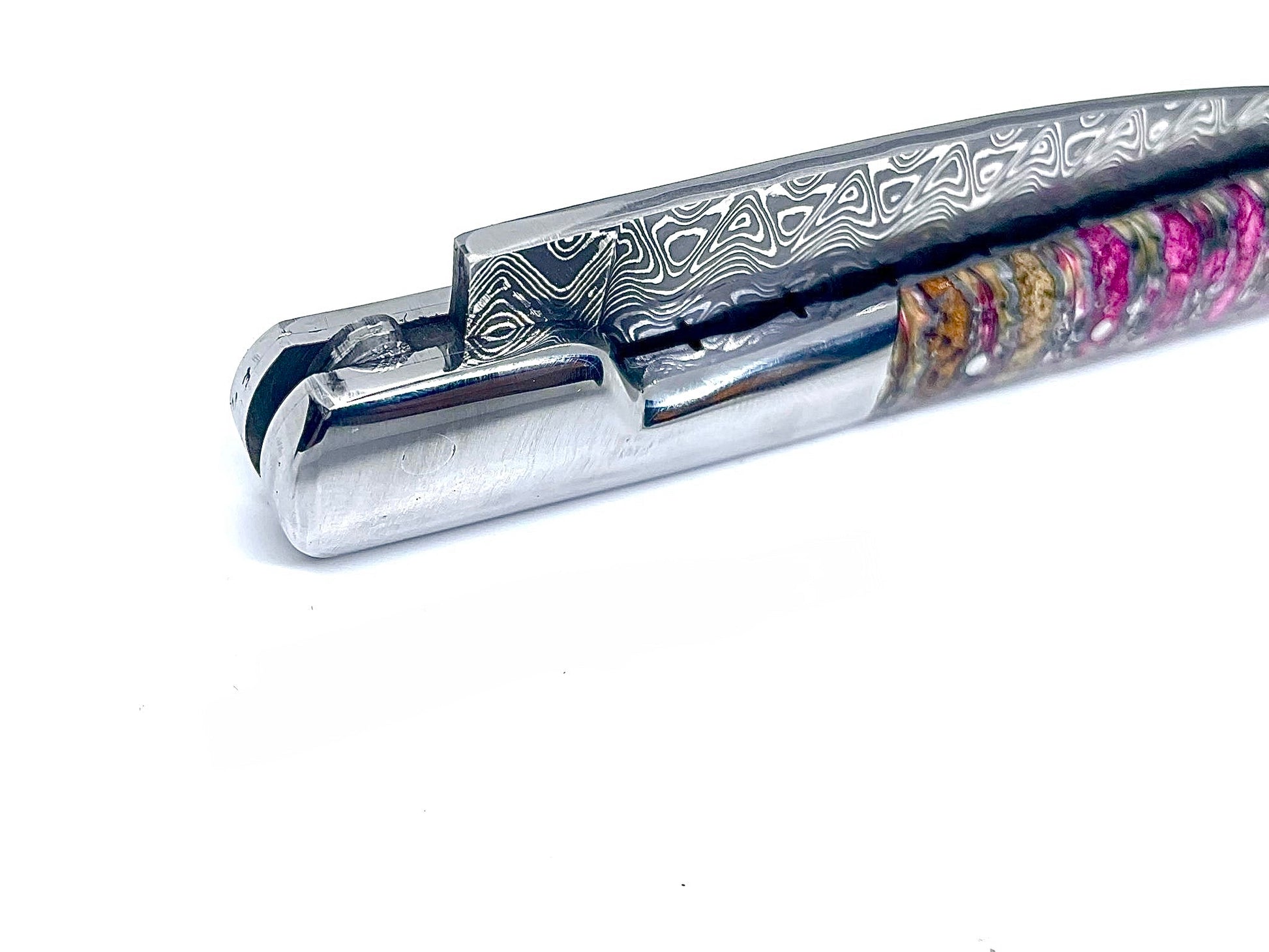 Coutellerie Passarelli - Couteau Vendetta lame de Damas 13 cm molaire de mammouth stabilisée et teintée