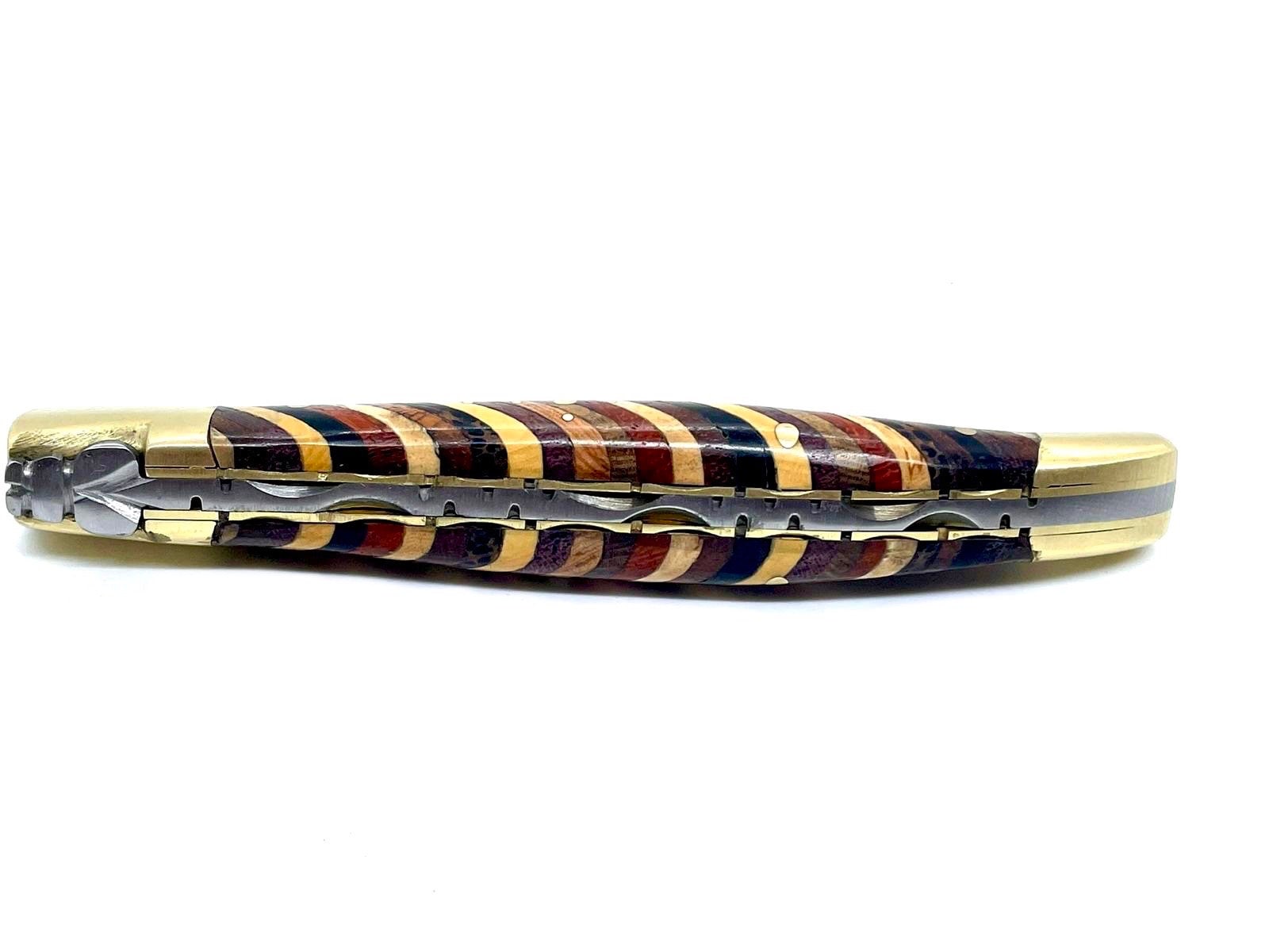 Material: Boxwood, Padouk, Walnut burl and Yew. Stabilized in resin.