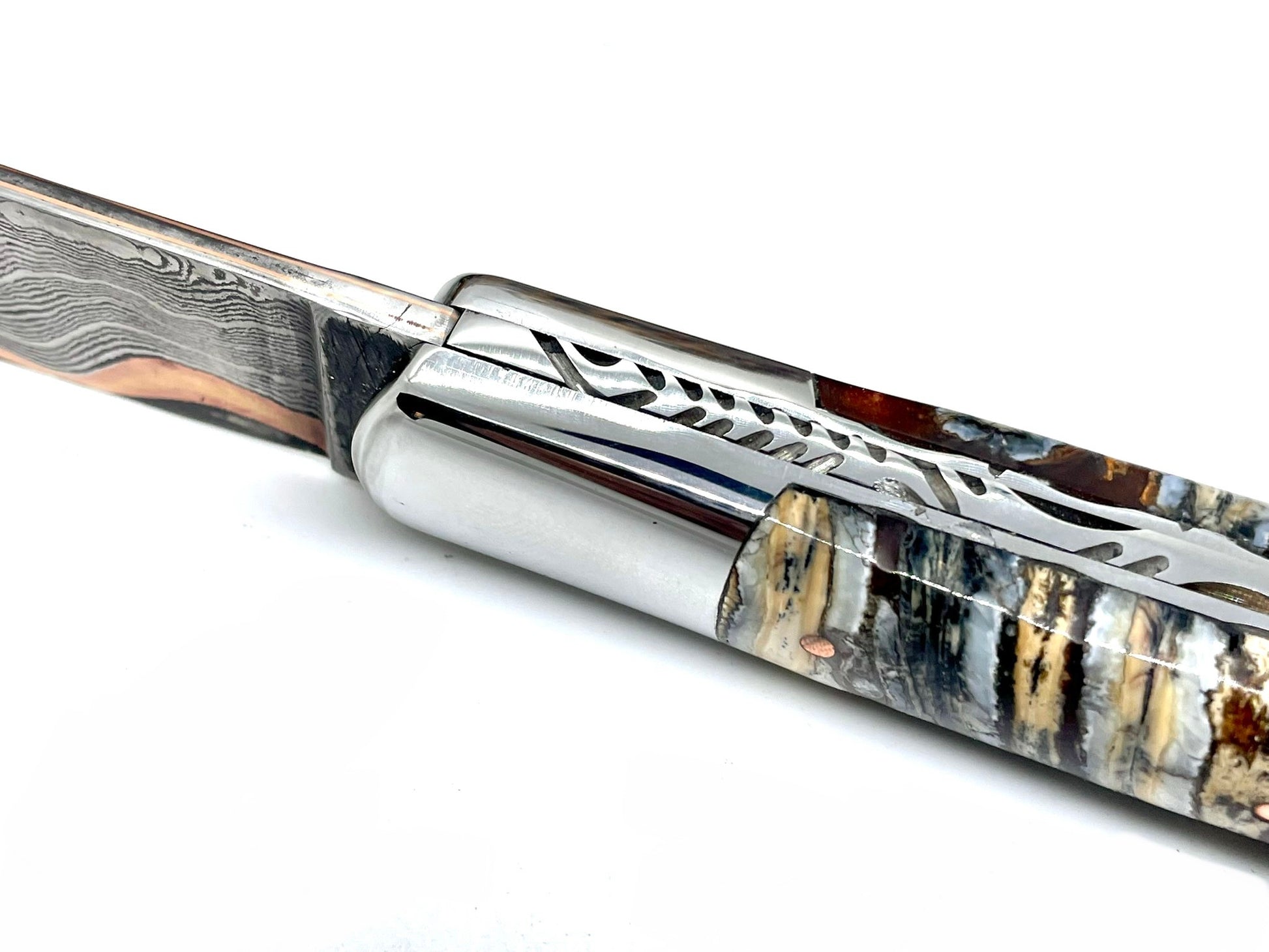 Chaque couteau pliant artisanal damas en mammouth est livré avec son certificat d’origine (république de Sakha Yakutia).