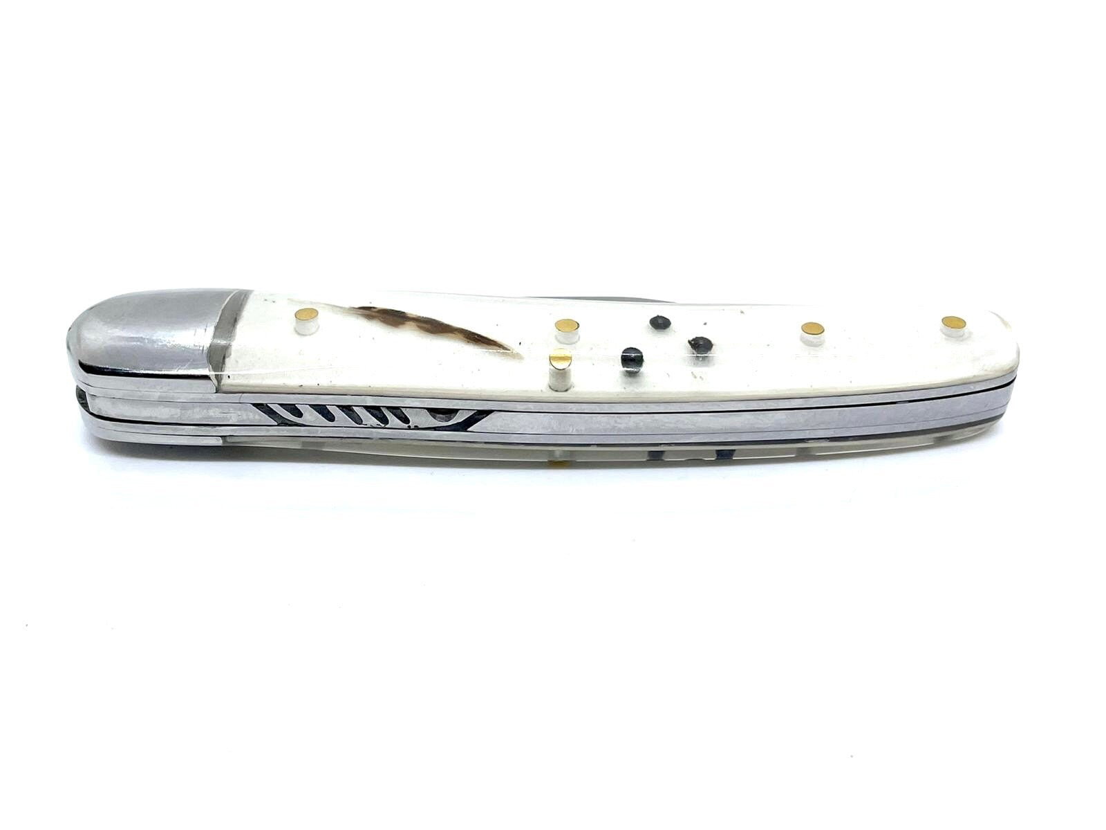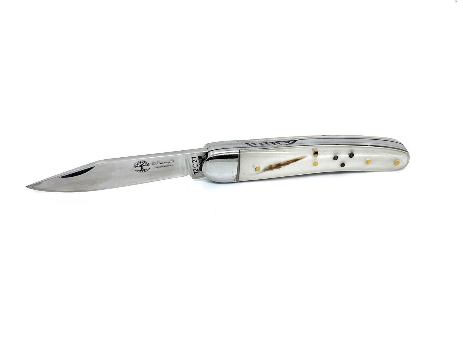 Coutellerie Passarelli - Couteau Alsacien lame pliable 10 cm Plume du peintre de bécasse et plombs de chasse